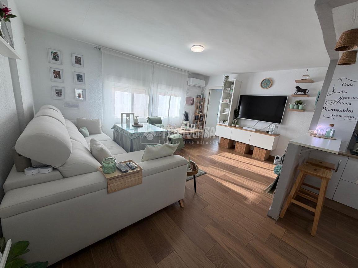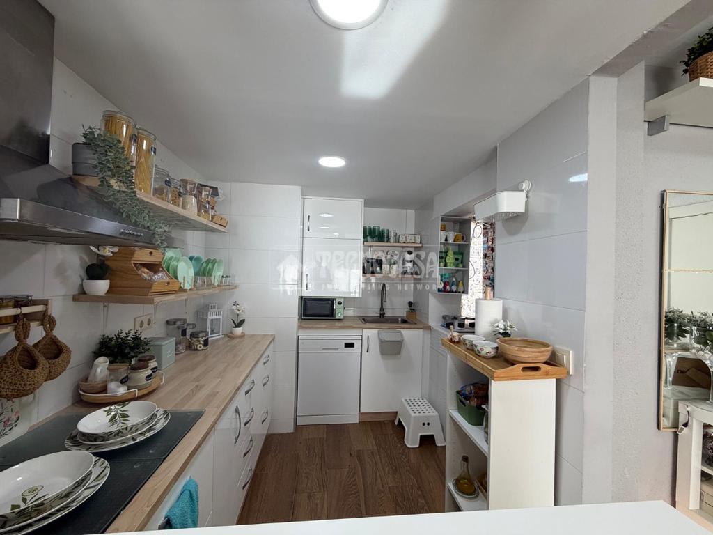 El salón es un verdadero oasis de luz natural, perfecto para disfrutar de momentos en familia o recibir amigos. La cocina americana, también reformada, ofrece un diseño contemporáneo que invita a cocinar y compartir. Además, el aire acondicionado recientemente instalado en el salón asegura un clima agradable durante todo el año.